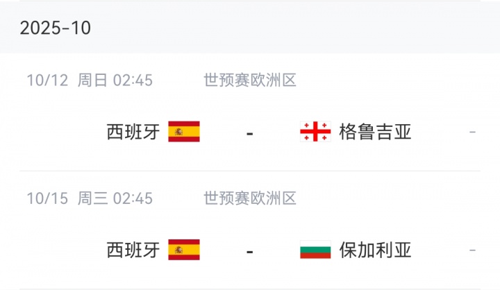 Tây Ban Nha sẽ gặp Georgia và Bulgaria lần lượt vào ngày 12 và 15 tháng 10.