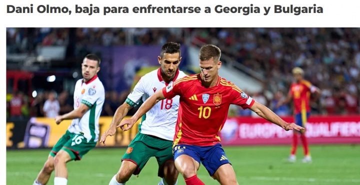 Dani Olmo sẽ không thể tham gia các trận đấu với Georgia ở Elche và gặp Bulgaria ở Valladolid do chấn thương.